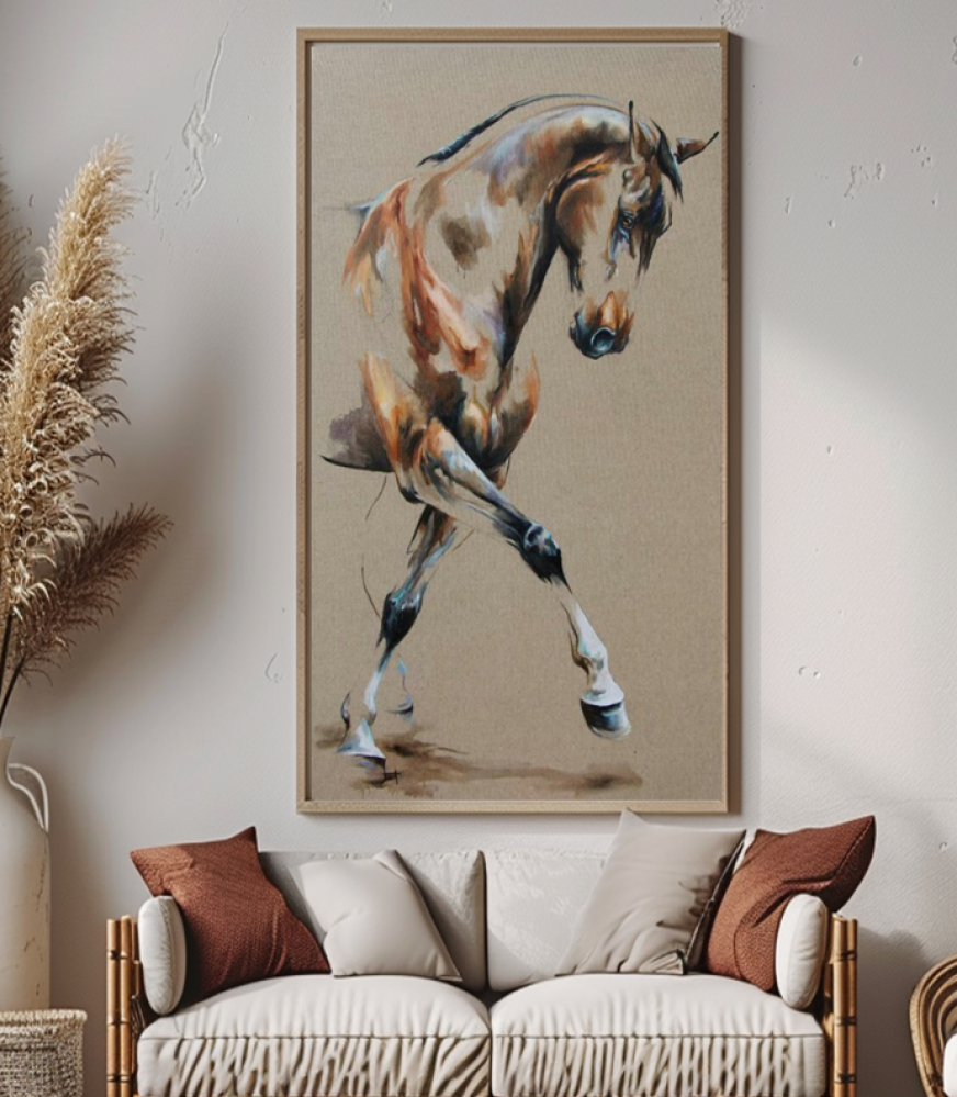 •لوحات قماشية مشدودة على إطار مخفي او مع امكانية اضافة برواز خارجي