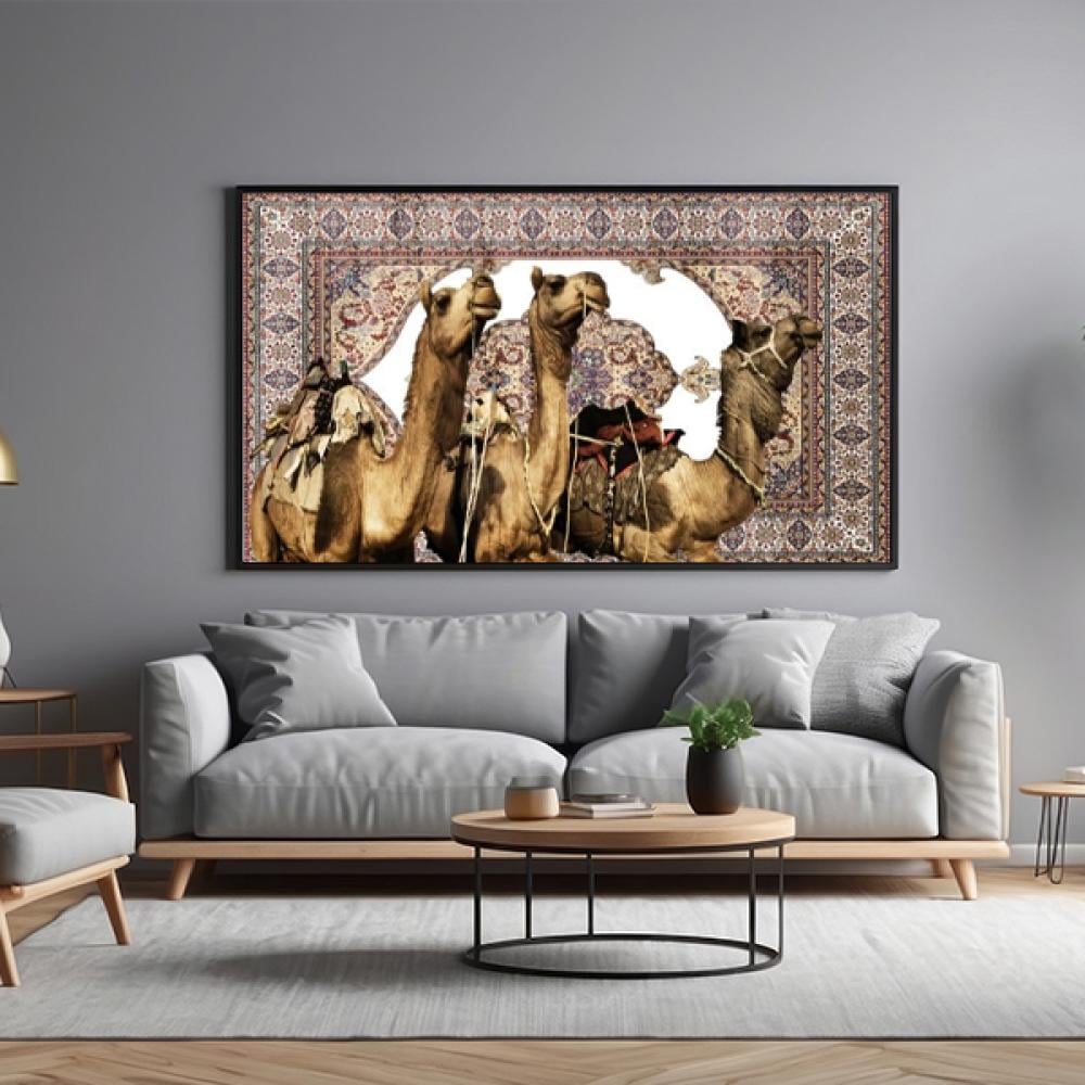 •لوحات قماشية مشدودة على إطار مخفي او مع امكانية اضافة برواز خارجي