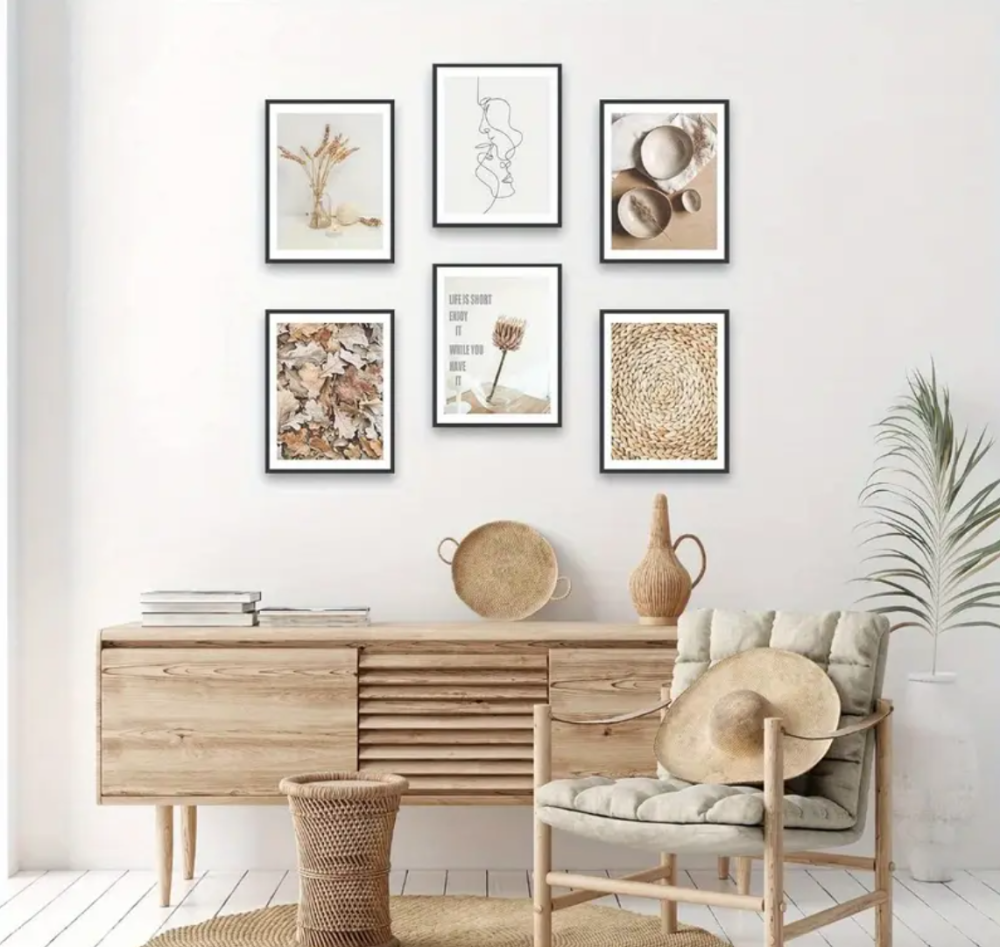 ارتقِ بجمال منزلك أو مكتبك مع مجموعة فنية عصرية مكونة من 6 لوحات متناسقة، بألوان هادئة (بني، رمادي، أخضر) تعكس الرقي والهدوء.