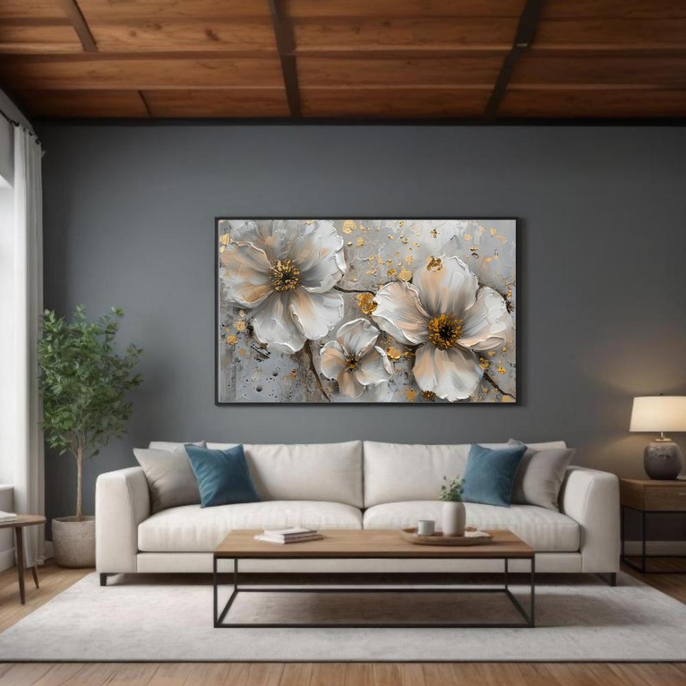 •لوحات قماشية مشدودة على إطار مخفي او مع امكانية اضافة برواز خارجي