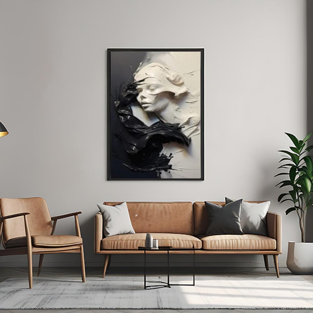 •لوحات قماشية مشدودة على إطار مخفي او مع امكانية اضافة برواز خارجي