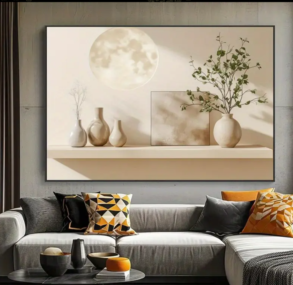 •لوحات قماشية مشدودة على إطار مخفي او مع امكانية اضافة برواز خارجي