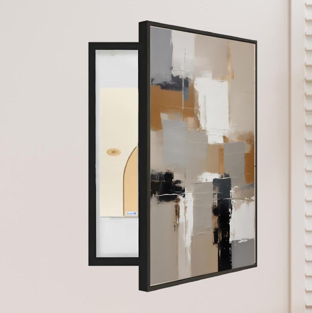 لوحة جدارية راقية وعصرية تقدم لمحة فنية رائعة لتحسين جمالية المساحات الداخلية. تمتاز بتصميم فريد يجمع بين الأناقة والوظائف العملية، حيث تُخفي بشكل أنيق عدادات الكهرباء، مما يضفي لمسة جمالية للبيئة المحيطة. تستخدم اللوحة مواد عالية الجودة، مما يجسد الدقة والمتانة.
