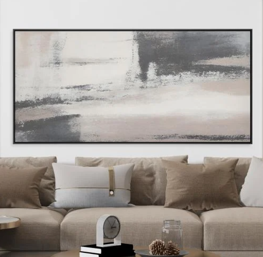 •لوحات قماشية مشدودة على إطار مخفي او مع امكانية اضافة برواز خارجي
